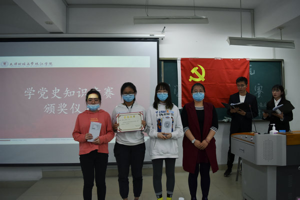 知识问答内容涵盖了中国共产党自1921年成立以来所经历的奋斗历程。18支参赛队伍经过一番激烈角逐后,计科1916班晏礼翠、唐琪与杨遵真,经统1910班毛路君、贾文宇与李灵昕,经统1807班赵雅停、王戟与庞祎闻组成的三支队伍,凭借对党史知识的丰厚储备和良好的团队协作能力最终脱颖而出,成功赢得了本次竞赛的胜利。白晶丽老师和李畅老师为获胜队伍颁奖。台下其他参赛成员及观众以热烈的掌声对获奖队伍表示了由衷的祝贺。