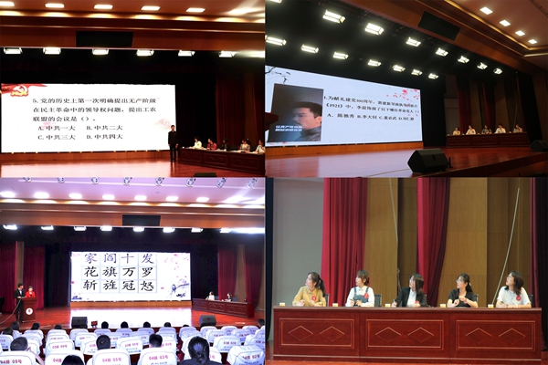 为庆祝中国共产党建党100周年,深入推动“四史”学习教育,了解革命前辈的奋斗历史,弘扬革命文化和社会主义先进文化,6月8日晚,由学院团委、学工部主办,人文学院承办的2021年第一季“感悟国学经典 弘扬文化精神”中华优秀传统文化系列竞赛决赛在中和楼报告厅成功举办。院纪委书记白晓,党委副书记王猛,团委书记周圆,教育评价与专业建设办公室主任魏红,学工部副部长梁如春、马力;人文学院副院长崔际银,党总支书记汪晓薇以及相关系部领导老师出席活动,学生党员等300余位学生代表观看了本季竞赛。