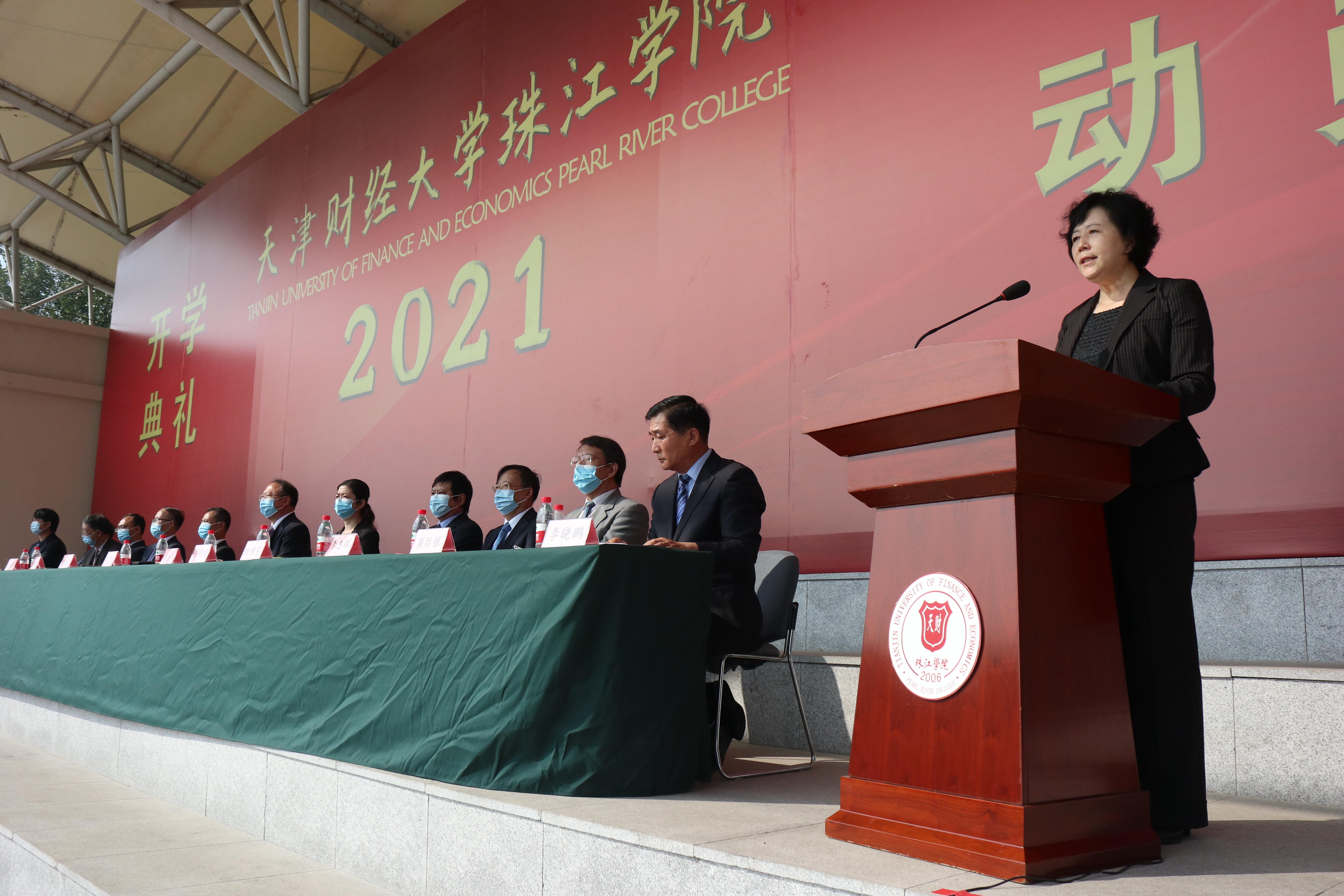 任碧云院长作题为《砥砺青春 不负韶华 做有志气、有骨气、有底气的新时代青年》的讲话。她代表学院对新生的到来表示热烈欢迎,并向教师们致以了节日的祝贺。在介绍了学院建院十五年来取得的成绩后,她以习近平总书记在庆祝中国共产党成立100周年大会上对新一代青年的寄语为遵循,给新生提出了三点希望。一是希望同学们做有志气的新时代青年,树立远大理想,砥砺家国情怀。肩负起重大的历史使命与艰巨的社会责任,将个人的职业规划、价值实现同国家和社会发展的实际需求紧密结合起来,心系家国、立志报国。二是希望同学们做有骨气的新时代青年,担当时代责任,勇于奉献奋斗。把强精神、硬骨气作为立身之根、立德之源、立功之本,矢志不渝坚守自己的理想和信念,始终如一保持做人的原则和底线,更好肩负起实现民族复兴的重任。三是希望同学们做有底气的新时代青年,锤炼品德修为,练就过硬本领。把增长才干、怀有教养、心存善良、保持真诚、坚持努力作为有底气的根本保证,理解把握时代潮流和国家需要,顽强拼搏、开拓进取,以实干成就一番事业。最后,她引用了习总书记在清华大学考察时的一段讲话,希望广大青年“要肩负历史使命,坚定前进信心,立大志、明大德、成大才、担大任,努力成为堪当民族复兴重任的时代新人,让青春在为祖国、为民族、为人民、为人类的不懈奋斗中绽放绚丽之花。”