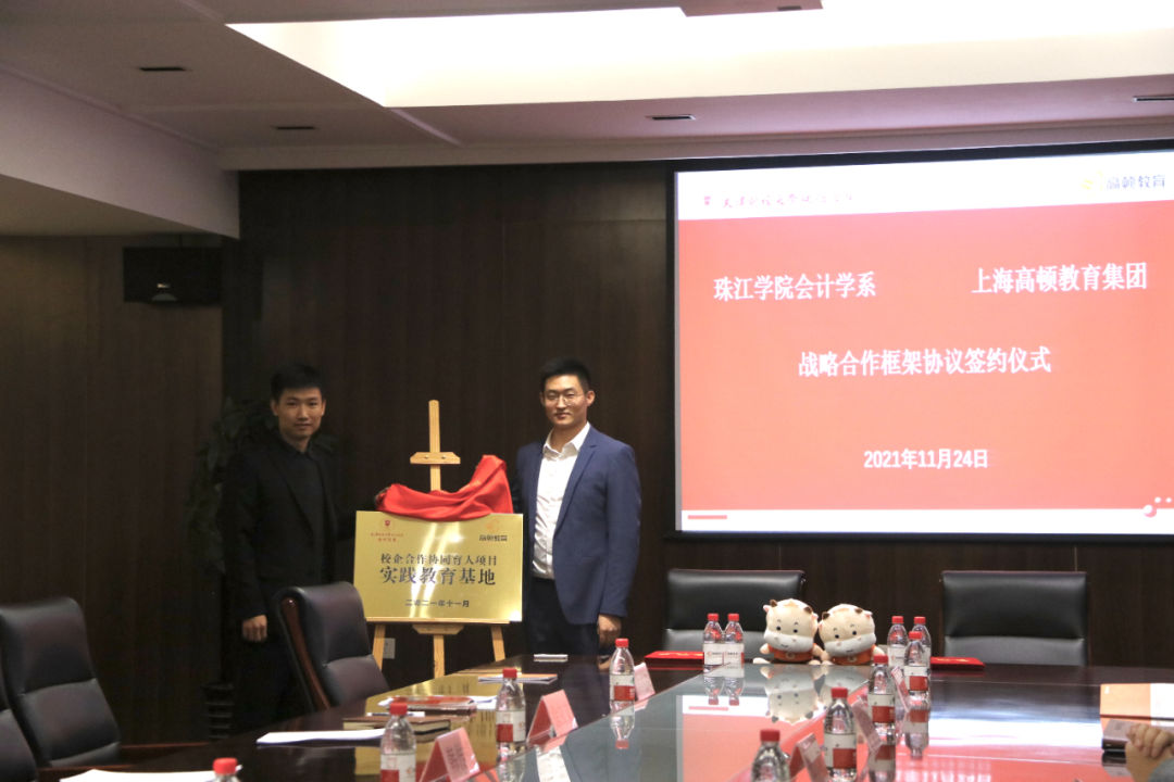 11月24日,会计学系与高顿教育集团举行校企合作签约暨校企实践教育基地揭牌仪式,管理学院副院长、会计学系主任韩传模和会计学系部分教师、高顿教育天津分公司总经理张长晴等相关负责人出席。双方将发挥各自优势强强联合,围绕着复合型财经人才培养、师资交流、课程研发、课题建设、推动CMA美国管理会计师认证等方面展开全面深度合作。