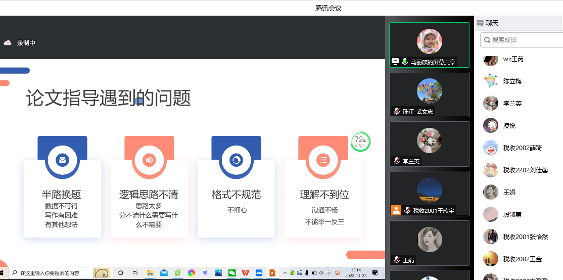11月23日下午,教师教学发展中心、李兰英名师工作室、财税系联合税收工作室以线上形式举办2023届毕业论文指导专题研讨会。财税系全体教师及税收工作室部分学生参会,李兰英教授主持。