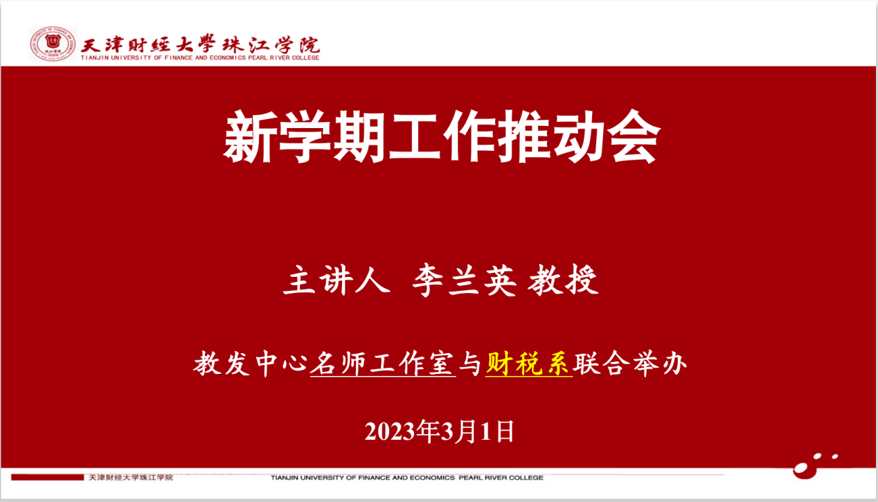 3月1日下午,教师教学发展中心、李兰英名师工作室召开新学期工作推动会,财税系全体教师参会,李兰英教授主持。
