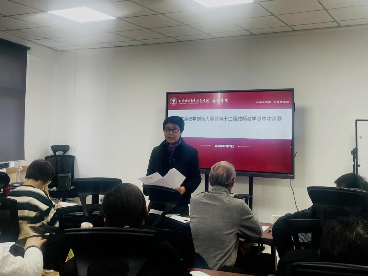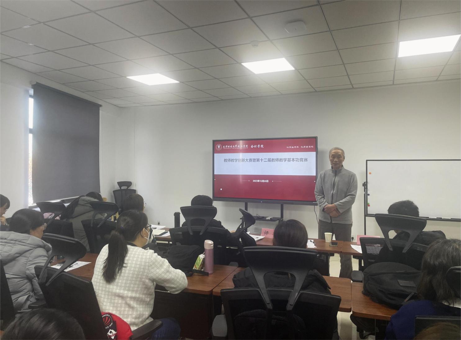 为提高教师的教学水平,激发教育创新活力,12月20日下午,教师教学发展中心联合徐立文名师工作室组织全体成员开展教学创新大练兵活动。经过初选,共推选12名教师上台比拼,邀请教学督导专家杨尊琦、赵秀云教授,会计学院院长韩传模作为评委专家进行指导。