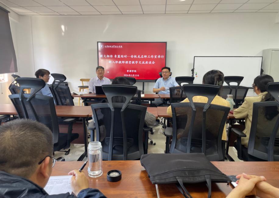 为提高新入职教师的专业素养和课堂教学能力,5月15日下午,安轶龙名师工作室在中和楼A208召开了新入职教师课堂教学座谈会,会议由管理学院办公室主任田雅娟老师主持,管理学院院长张英华教授、名师工作室负责人安轶龙教授、教学督导专家、管理系教研室主任、拜师学艺导师、新入职教师参加了会议。