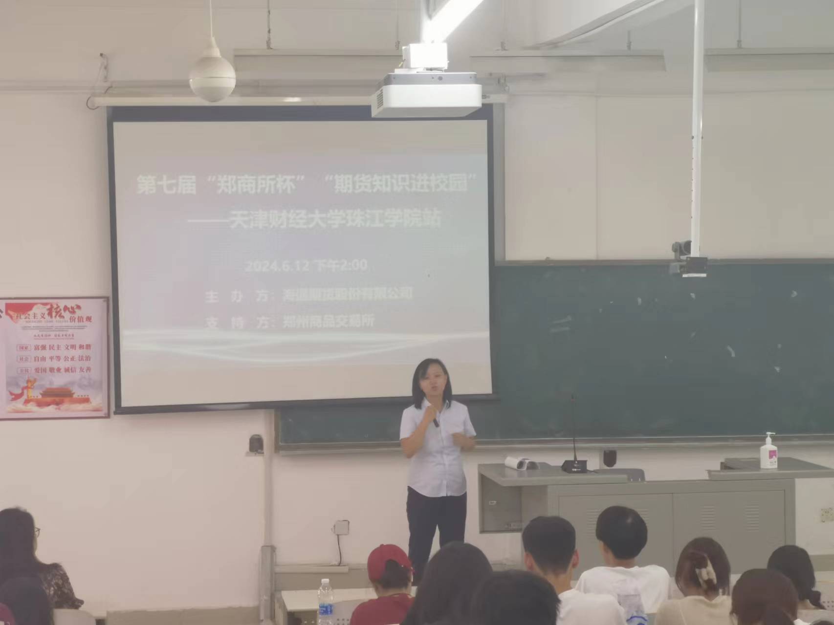 6月12日下午,王丽娜名师工作室在日益楼101举办学术交流活动。工作室邀请海通期货股份有限公司天津营业部龚少芬总监作了题为“第七届‘郑商所杯’期货知识进校园”的专题讲座。本次讲座由经济学院孟颖副院长主持,经济学院师生共120余人参加。