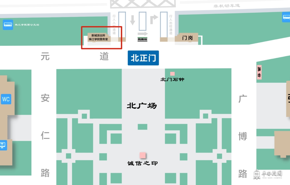 学院北门西侧入口处。