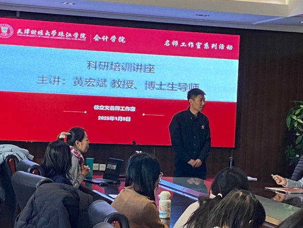 1月8日,教师发展中心携手徐立文名师工作室和会计学院,共同邀请了天津财经大学黄宏斌教授,举办了一场以“课题申报”为主题的科研培训讲座。此次讲座旨在通过分享黄教授在课题申报过程中的经验,帮助广大师生提高科研项目的申报质量与成功率。