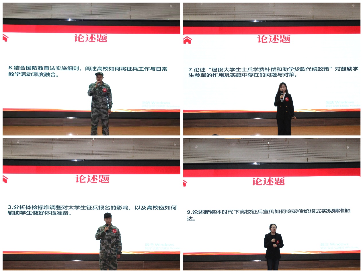 现场问答环节精彩纷呈,必答题、风险题、论述题层层递进,全面考察了选手们的知识储备、反应速度与思辨能力。必答题环节,倒计时启动后,选手们分秒必争,应答干脆利落,展现出扎实的国防知识基础与敏捷的思维反应;风险题环节,选手们勇于挑战,敢于选择高难度题目,现场屏息凝神,选手沉着应对,彰显了无畏的勇气与智慧;论述题环节,选手们旁征博引,逻辑严密,充分展现了新时代大学生的家国情怀与责任担当。