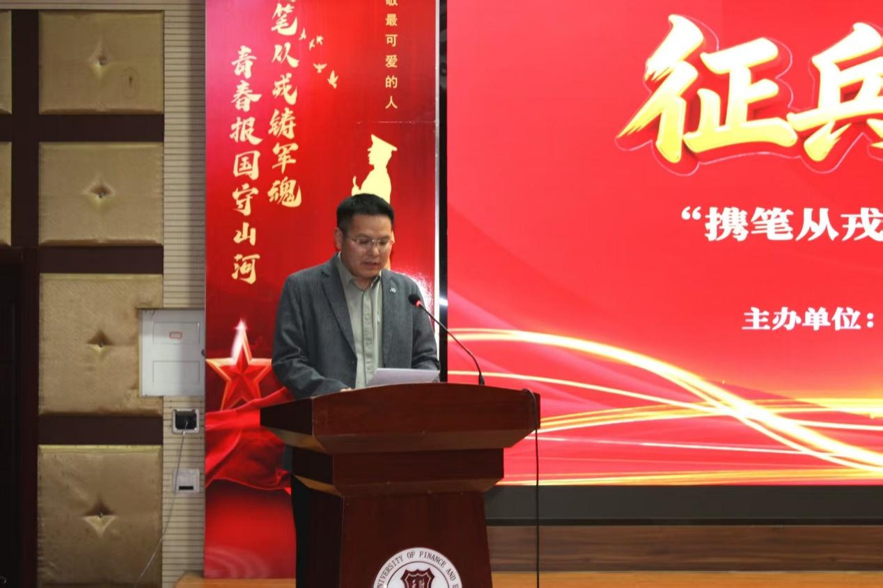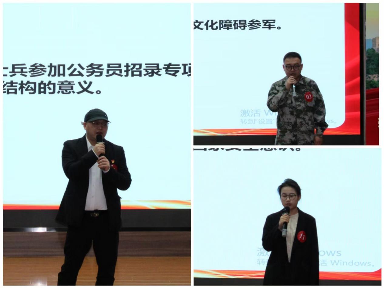 4月8日下午,学生专场决赛现场,气氛热烈而紧张。武装部部长吴亚娟在致辞中深情寄语,强调征兵工作对于国防和军队建设的重要性,鼓励广大学子将爱国情怀转化为实际行动,用青春和热血书写报国华章。