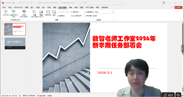 会上,杨尊琦老师回顾了工作室过去一年的建设成果,对全体成员在数智教学探索、团队建设、教学实践等方面的努力与成绩给予充分肯定。她指出,工作室要始终立足学校数智化教育发展规划,坚持以研促教、以教促学,不断提升教师专业能力,推动课堂教学提质增效。随后,杨尊琦老师对2026年重点工作进行详细安排,明确各阶段任务与时间节点。