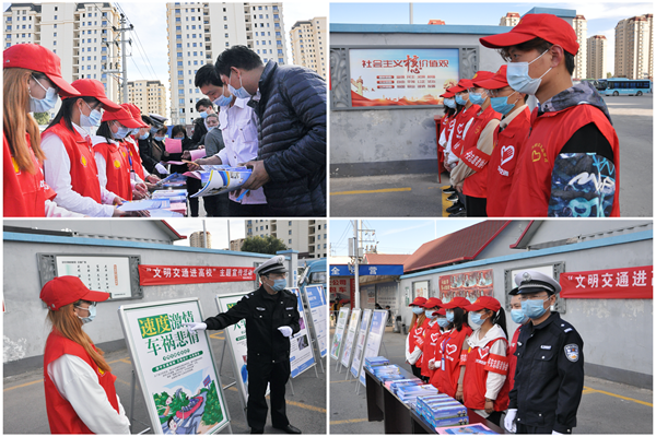 随后,志愿者们在警官的带领下兵分两路,分别前往宝坻城区商业街、公交客运站及周边路口向客运司机、乘坐车辆的乘客及过往的电动车驾驶人发放交通安全知识宣传单,宣传交通安全知识。同时,志愿者们在民警的带领下还当起了“小交警”角色。志愿者们在路口挥舞红旗,对违反交通规则的行人、电动车驾驶人进行劝导。