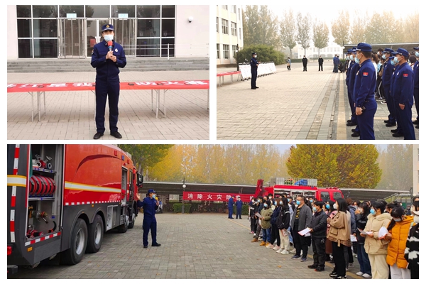 11月9日上午,为将消防宣传“软实力”转化为火灾预防“硬功夫”,在“119”全国消防日来临之际,学院在图书馆南广场举办了“抓消防安全 保高质量发展”消防安全主题活动,学院党委书记靳术海出席,200余名师生、食堂工作人员到场观摩。
