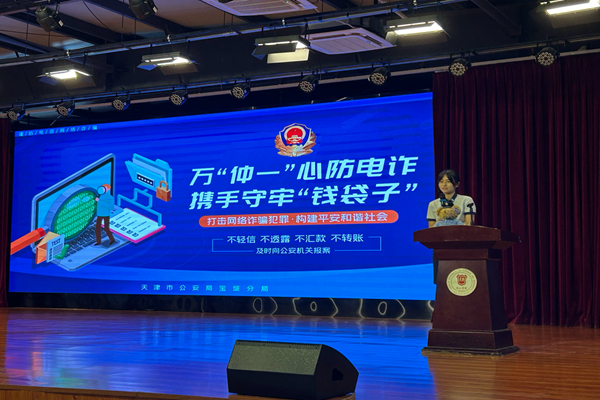 讲座现场座无虚席,师生们怀着对反诈知识的强烈求知欲齐聚一堂。公安宝坻分局反诈中心朴仲一警官以深厚的专业素养结合实际案例,深入浅出地为大家讲解了网上购物、网上交友、刷单、网络赌博等各类诈骗手段,让师生们深刻认识到诈骗的多样性和隐蔽性。同时,他还巧妙结合自身多年执法经历,以案说法,通过幽默风趣的讲解将复杂的防骗知识传授给在场的每一位学生。京津新城派出所张建斌警官和天津滨海农商银行宝坻支行的工作人员则分别从识诈反诈注意事项和金融安全的角度出发,提示同学们遇到网络上的不明信息和来电要做到不轻信、不透露、不转账。