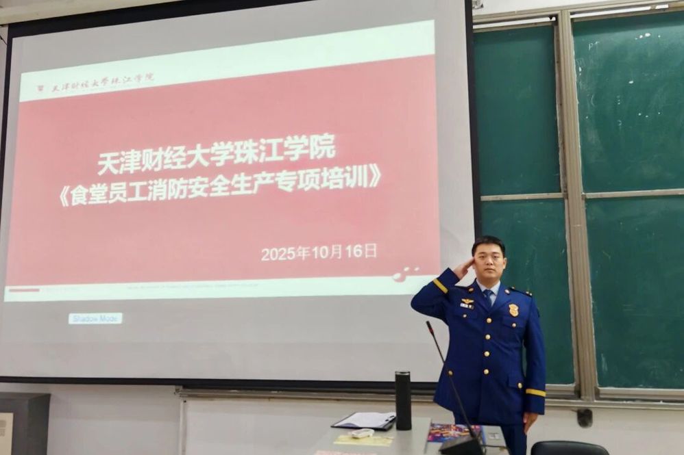 值此第34个全国消防日来临之际,为响应“全民消防、生命至上——安全用火用电”主题,进一步加强消防安全工作,培养消防安全“明白人”,10月16日,学院安全部联合后勤基建部邀请京津新城消防救援站李晨阳站长,为食堂员工举办消防安全知识讲座。
