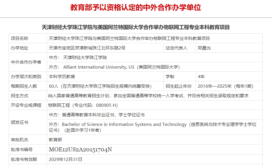 2021年2月,教育部下发《关于通报2020年本科以上中外合作办学机构和项目评估结果及后续工作要求的通知》(教外司办学[2021]212号)与《关于部分高校申请变更中外合作办学项目有关事项的批复》(教外司办学[2021]239号)。学院与美国阿兰特国际大学(Alliant International University)合作举办物联网工程专业本科教育项目顺利通过教育部2020年中外合作办学合格评估,并获批项目变更申请,招生年限延长至2025年。