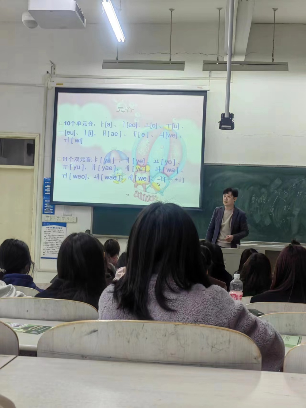 韩国语基础课,由国际交流部朴光范博士授课,本学期开设两个班,共200名学生选修了这门课程,选课通道开启5分钟便报名满员。教学过程中学生学习积极性高,课堂氛围活跃,师生积极互动,有许多未能选上课的学生,要求前来旁听,表明本课程开设满足了学生渴求知识的愿望。