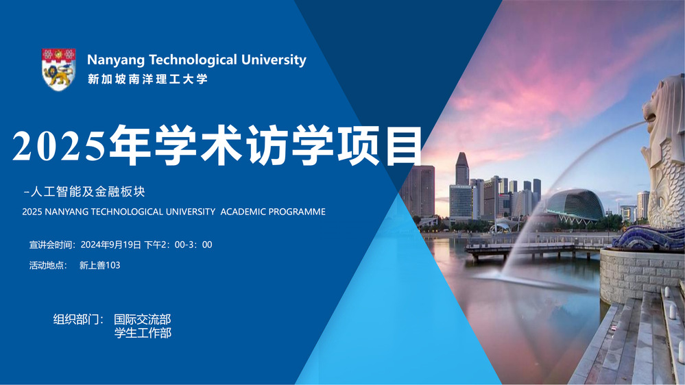 2025年新加坡南洋理工大学学术访学项目-人工智能以及金融板块