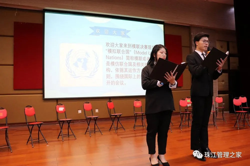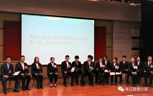 比赛开始先由模联大会主席代表发言宣布本次大赛的主题和决赛的比赛规则,大会主席代表和秘书长主持会议流程后宣告大会正式开始。