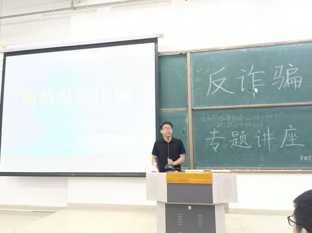 接下来,赵伟老师向我们普及到,当下五种常见网络电信诈骗类型为:网络刷单返利诈骗、冒充电商物流客服诈骗、冒充公检法诈骗、虚假网络贷款、网络交友诈骗。同时,老师还介绍道,现在主要利用QQ、MSN等网络聊天工具实施诈骗;利用网络游戏装备及游戏币交易实施诈骗;利用网上银行实施诈骗;网购诈骗;网上中奖诈骗;冒充公检法工作人员实施电信诈骗;冒充亲友以车祸、嫖娼(交友)、吸毒被抓实施电信诈骗等,各位同学自我警惕的同时,也应当向周围的人宣传防诈骗相关知识。
