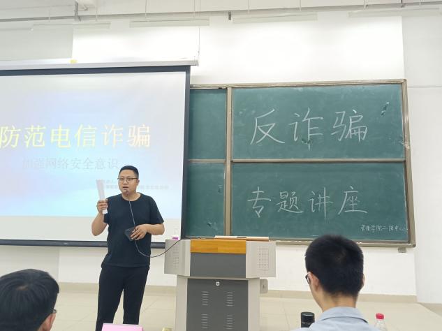 讲座第二项,校安全部部长赵伟老师担当本次“防范电信诈骗”宣传教育讲座主讲人。在讲座中,他指出网络电信诈骗危害性,通过他的介绍,我们得知电信诈骗具有诈骗手段多样,犯罪组织性强,犯罪涉案区域辐射广泛等特点严重危害群众财产安全,扰乱正常生产生活秩序,已成为影响社会稳定的突出犯罪问题。