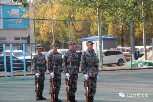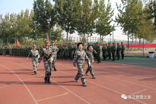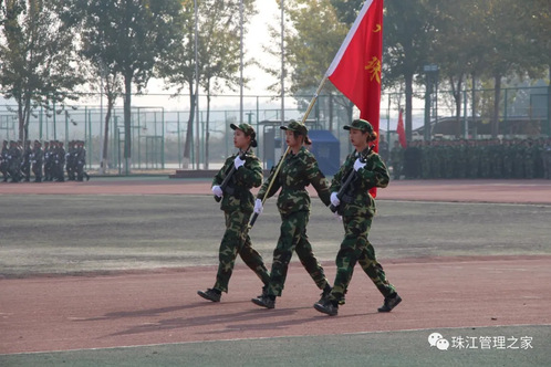 迎校旗,分列式,军训校旗队伴随着雄壮激昂的军乐曲走在前列,他们手持钢枪,精神抖擞地向主席台走来。列队完毕,任碧云院长亲自下台检阅每一个连队。检阅完成后,分列式正式开始,受阅的方队,迈着整齐的步伐,喊着嘹亮的口号接受领导的检阅。