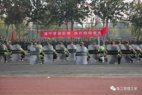 接下来的是新生军训训练科目汇报表演。警棍盾牌术方队:警棍盾牌术是运用警棍、盾牌进行攻防的一种格斗技术,是治安维稳必须掌握的技能,随着这刚劲有力,整齐划一的动作,体现出方队学子苦练基本功的丰硕成果。