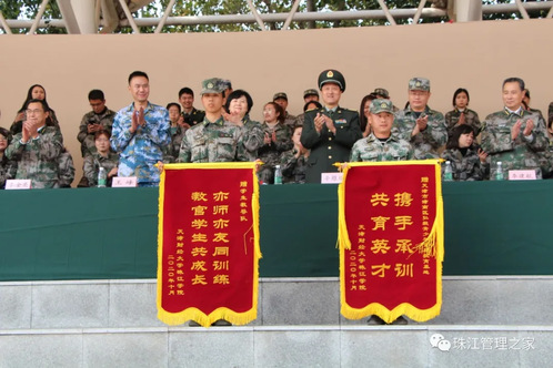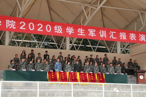 下面宣读军训表彰结果,由学院领导宣读学生内务评比、歌咏比赛、优胜连队和先进个人的获奖结果。其中,管理学院获得了内务评比的第一名,管理学院一连和管理学院二连获得了优胜连队的称号,124名管理学院学生获得了军训先进个人奖。