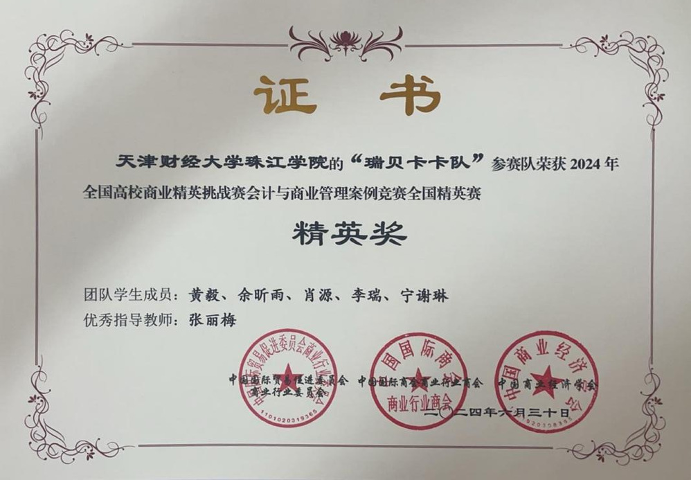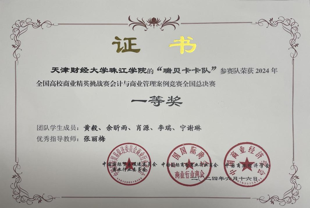 近日,2024年全国高校商业精英挑战赛(会计与商业管理案例竞赛)全国总决赛圆满落下帷幕,由管理学院大学生学习互助中心工作室张丽梅老师指导的黄毅、余昕雨、肖源、李瑞和宁谢琳组队与来自全国400余所院校的2000多支队伍同台竞技、激烈比拼,最终斩获国家级一等奖,并晋级参加线下精英赛,获得精英奖。