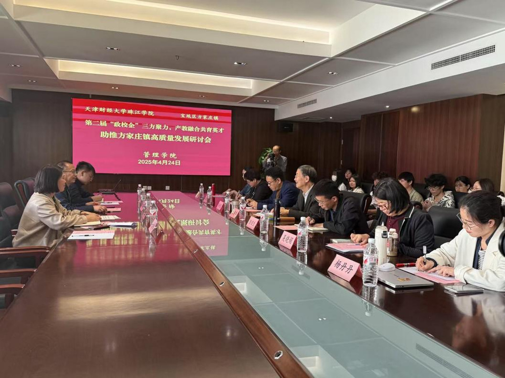 为进一步深化产教融合,推动“政校企”合作向更高更深层次发展,4月24日,天津市宝坻区方家庄镇党委副书记、统战委员、工会主席田荣华、天津市泽宝水泥制品有限公司工会主席邸占功等一行莅临管理学院共同参加了第二届“政校企”三方聚力,产教融合共育英才,助推宝坻区方家庄镇高质量发展研讨会。今年会官方网站评建办主任王志宇教授、管理学院院长张英华教授、副院长安轶龙教授、党总支书记、学工办主任陈绍生以及师生代表参加座谈研讨。会议由管理学院副院长安轶龙教授主持。