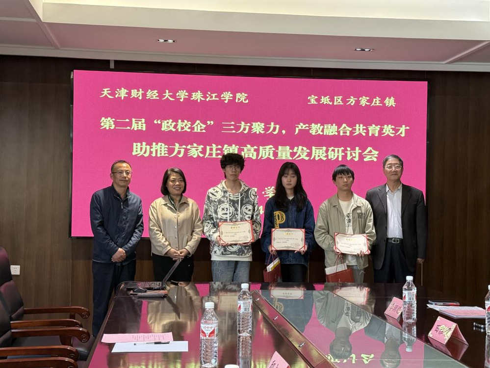 汇报结束后,方家庄镇党委副书记田荣华对研究成果给予表扬,对管理学院的教学理念及应用型办学特色给予充分肯定,强调了理论与实践相结合的重要性,鼓励同学们继续深化研究,为地方经济发展贡献智慧和力量,并感谢指导教师与同学们为方家庄镇企业发展所做出的辛勤付出。企业工会主席邸占功感谢了同学们对天津市泽宝水泥制品有限公司的深入调研,提出的优化方案,讲到研究结果对企业将具有重要的参考价值。张英华院长对此环节作总结讲话,对企业大力支持和同学们对教学改革的积极配合表示感谢,希望今后同学们在知识与能力双提升上继续下功夫、出成果,在助推宝坻产业振兴方面,争取获得更多的成果。张英华院长和田荣华副书记、公司工会主席邸占功分别为一、二等奖获得者进行了颁奖。