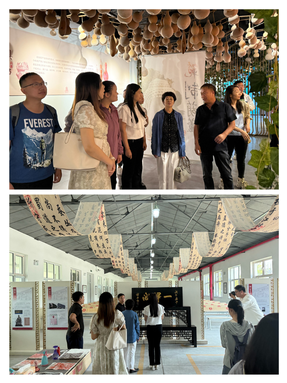 大钟庄镇宣传委员李佳热情接待了旅游系教师,并随同牛庄子村党支部书记张连会带领教师们参观了葫芦庐博物馆,双方围绕葫芦的制作技艺、民俗、文创、衍生产业、食阁等内容展开深入交流。随后,在大米庄村党支部书记郑学臣的带领下,教师们到大米庄村参观了智慧水稻演示,并围绕“津川一号”食味稻绿色产业相关发展进行交流。最后,教师团队深入参观了一得阁墨业有限公司,全面了解并体验了一得阁第四代传承人魏光耀在“制墨八法”、公司发展以及非遗研学体验等文旅项目上的成果。