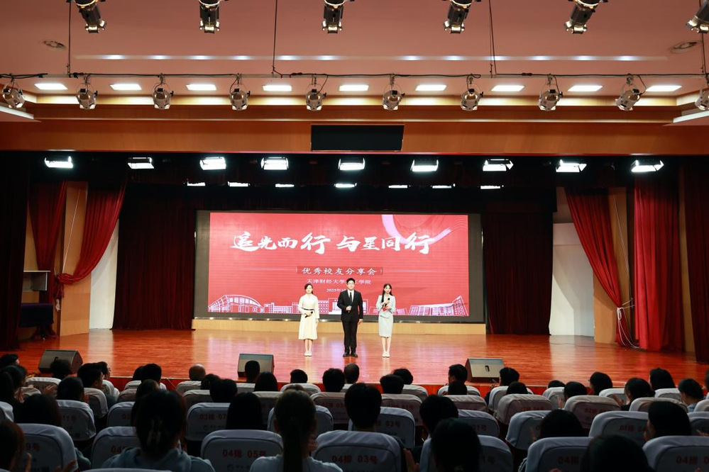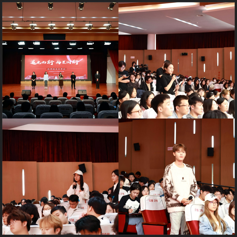 为发挥优秀校友榜样力量,搭建校友与在校生交流的桥梁,助力新生明确成长方向。10月15日,学院在中和楼报告厅举办“追光而行,与星同行”优秀校友分享会。院长任碧云、副院长李晓鹏、院长助理郭鑫出席,四位优秀校友受邀分享,学工部部长郑鲲鹏、管理学院院长张英华、各二级学院学工办主任、辅导员以及2025级新生共900余人参加。