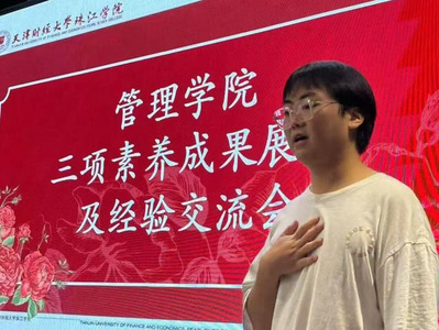 工作中,他始终坚守“服务同学、锻炼自我”的宗旨,在学生工作岗位上履职尽责。担任管理学院学生会学习部部长期间,组织“思考与思辨”辩论赛;统筹学院运动会方阵筹备与展示等学生活动。升任校学生会主席团成员后,以严谨负责的态度统筹全校学生会工作,协调各部门有序开展校园文化活动。凭借出色的组织协调与沟通能力,他获评校级“优秀学生干部”。