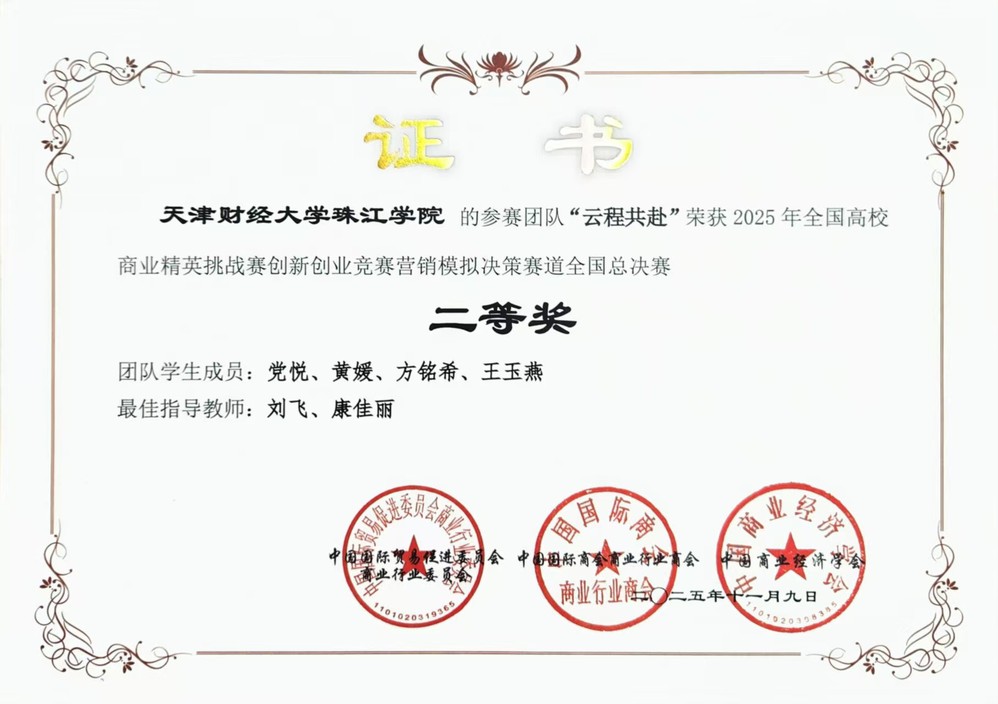 全国商业精英挑战赛创新创业竞赛是国内高校创新创业领域的标杆赛事之一,覆盖创业、营销、流通等多个赛道,位列教育部大学生榜单第47项。该赛事要求团队在限定周期内完成全链条商业决策,同时应对市场不确定性,全方位考察学生商科实战能力与团队协作水平,是高校商科学生的 “实战练兵场”,在教育界与行业内认可度颇高。
