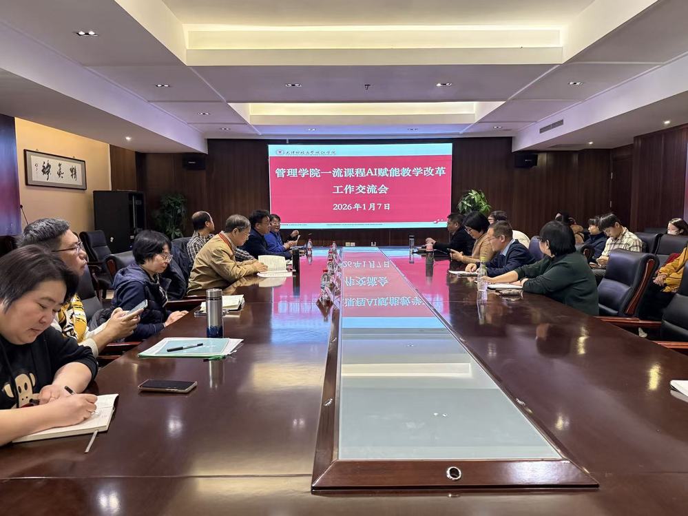 为深入贯彻学院关于推动人工智能与教育教学深度融合的战略部署,积极响应学科专业建设规划,切实破解教学痛点、提升课程建设质量与人才培养效能,管理学院于1月7日在中和楼C414成功举办一流课程AI赋能教学改革交流会。评建办主任王志宇教授、教务部毛亚琼部长应邀出席指导。管理学院院长张英华教授、副院长安轶龙教授、各系主任及全体教师参加会议。会议由安轶龙副院长主持。