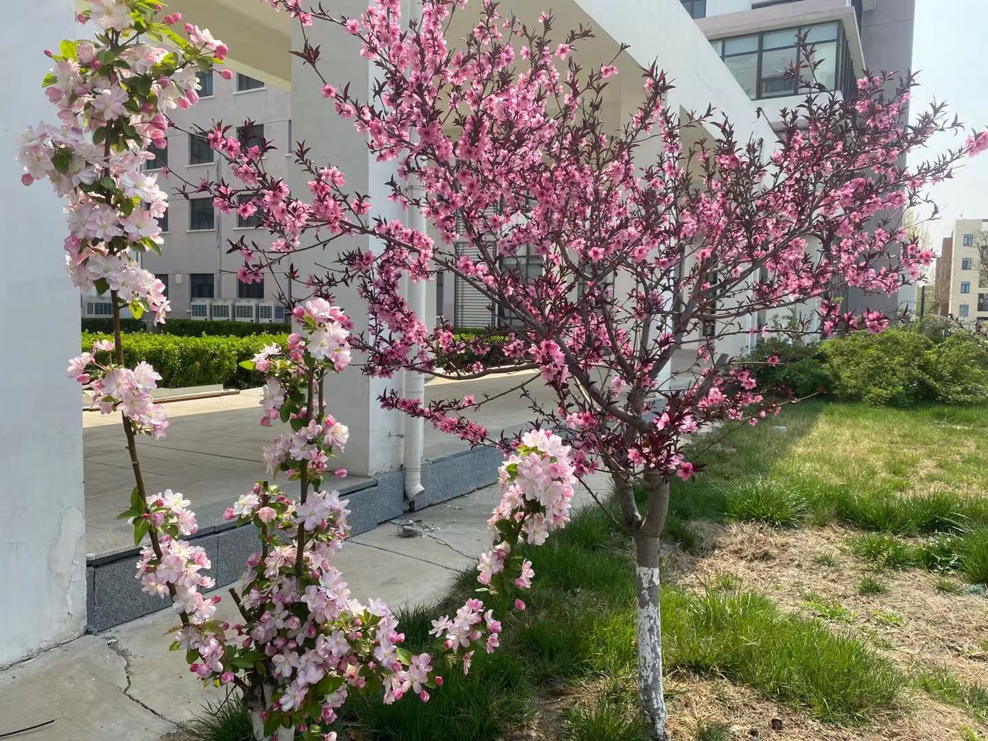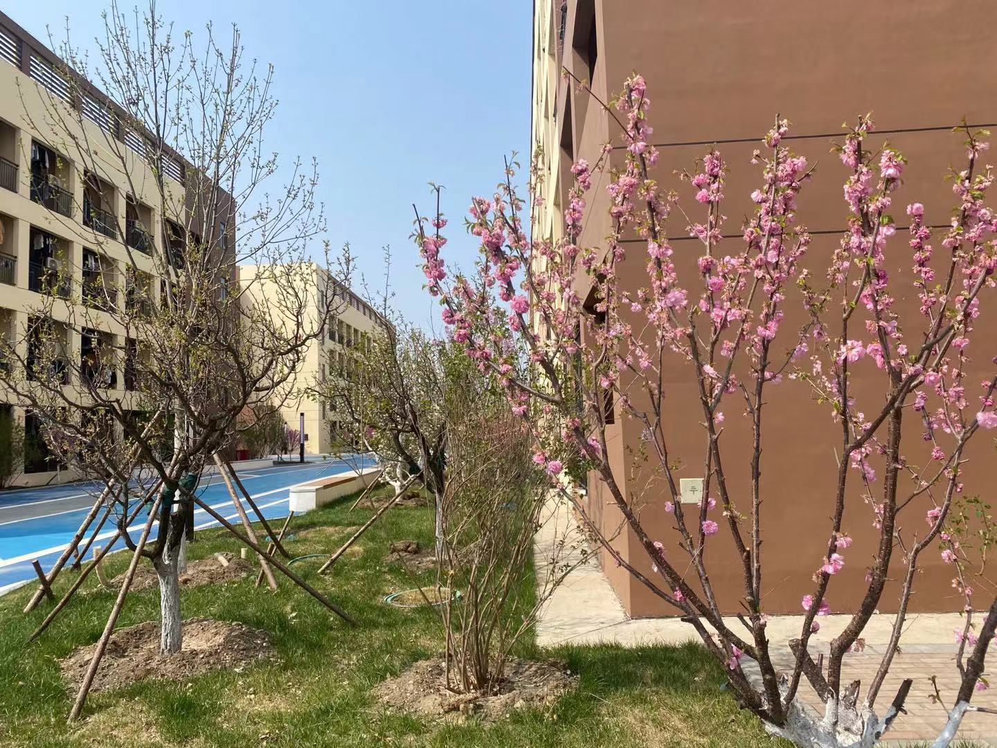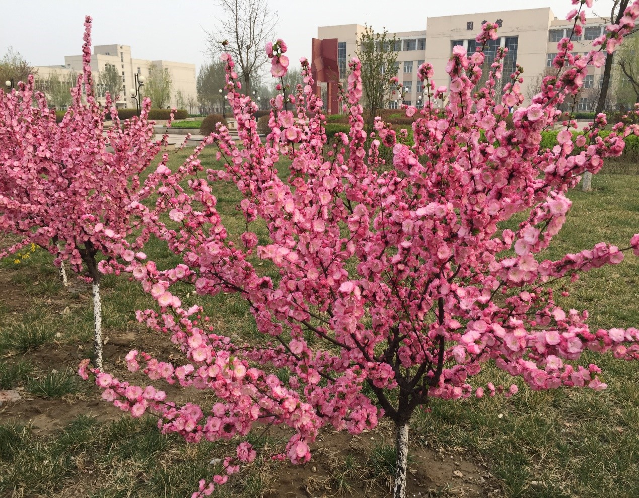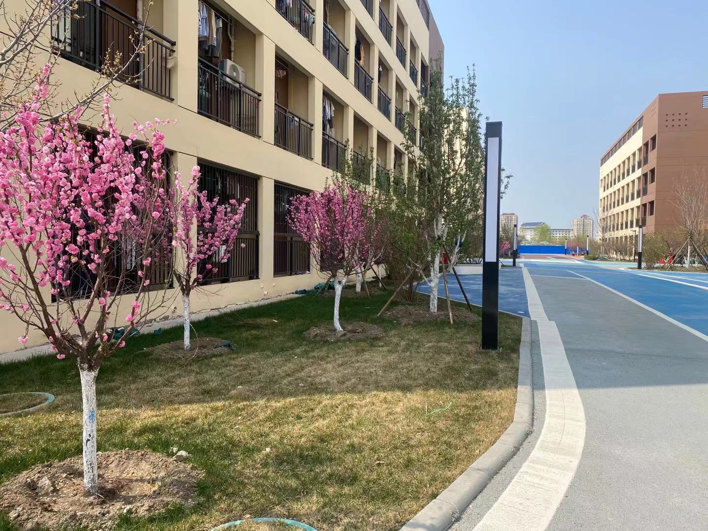 现校园种有法桐、速生杨、毛白杨、金丝柳、馒头柳、垂杨柳、国槐、金叶槐、龙爪槐、合欢、榆叶梅、油松、玉兰、西府海棠、碧桃、枣树、杏树、梨树、桃树等近30余种树木,近2200余株。