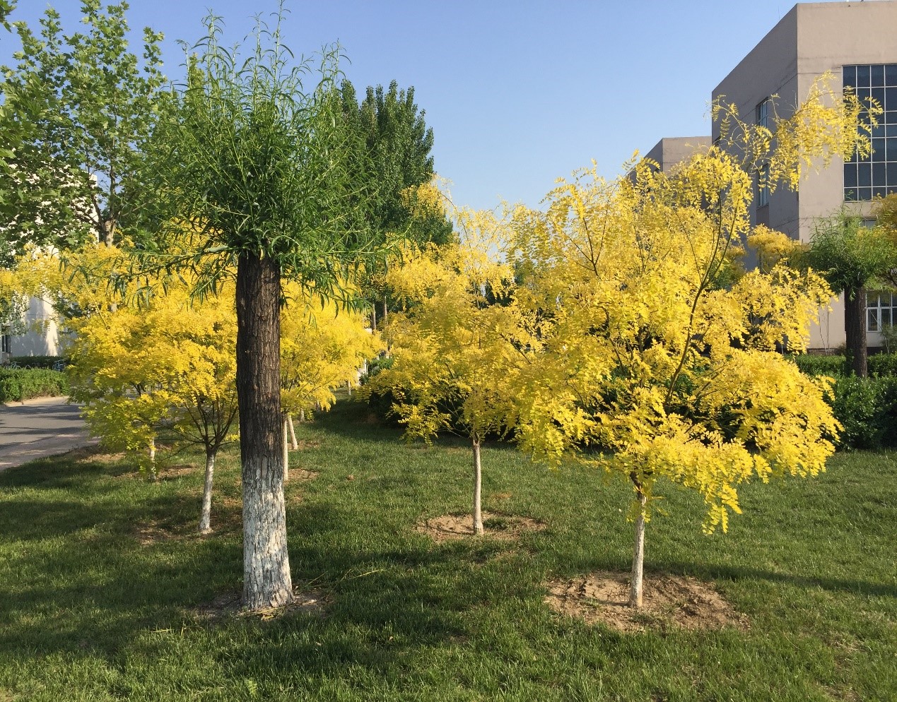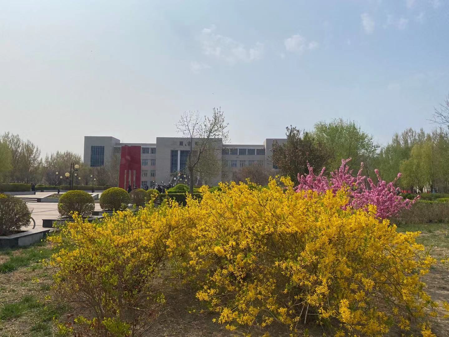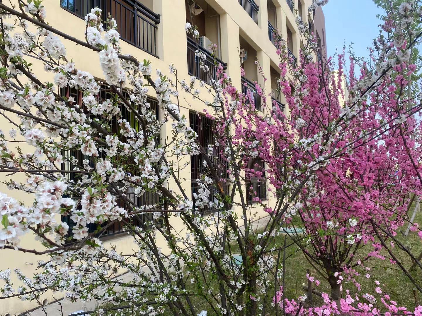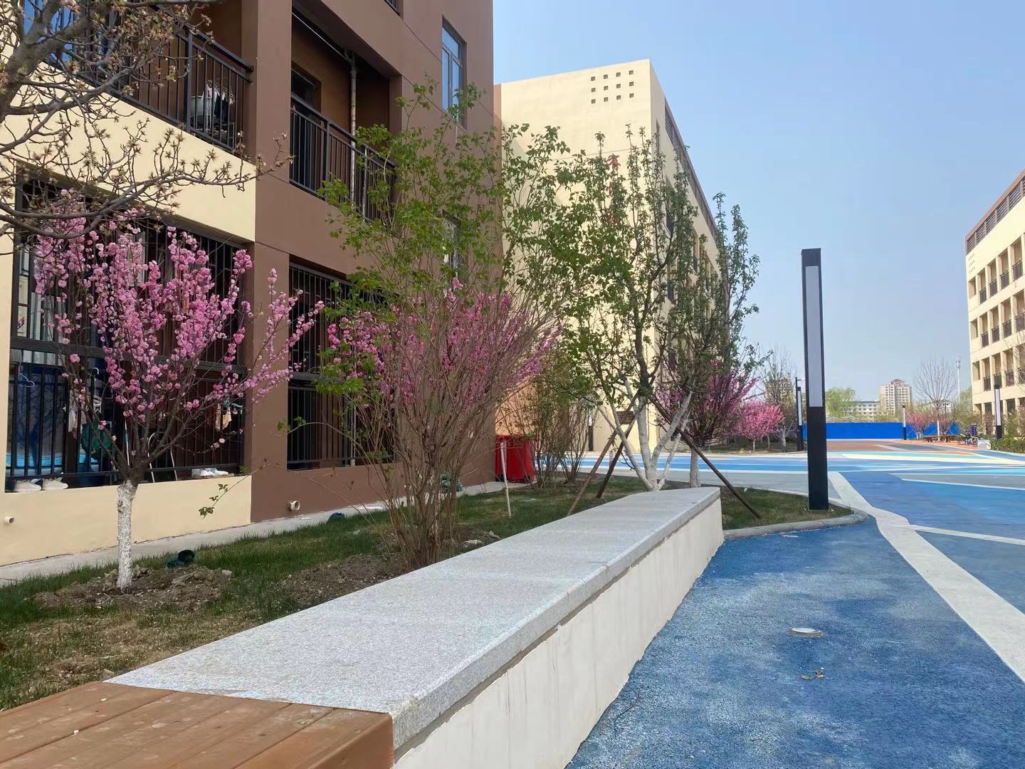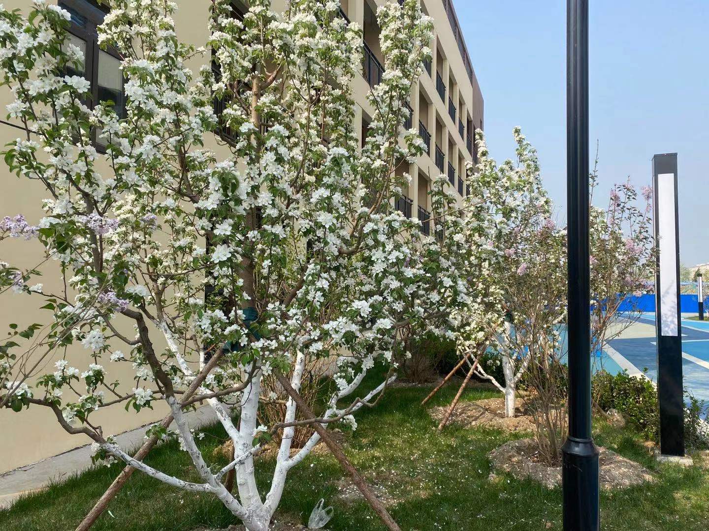 现校园种有法桐、速生杨、毛白杨、金丝柳、馒头柳、垂杨柳、国槐、金叶槐、龙爪槐、合欢、榆叶梅、油松、玉兰、西府海棠、碧桃、枣树、杏树、梨树、桃树等近30余种树木,近2200余株。