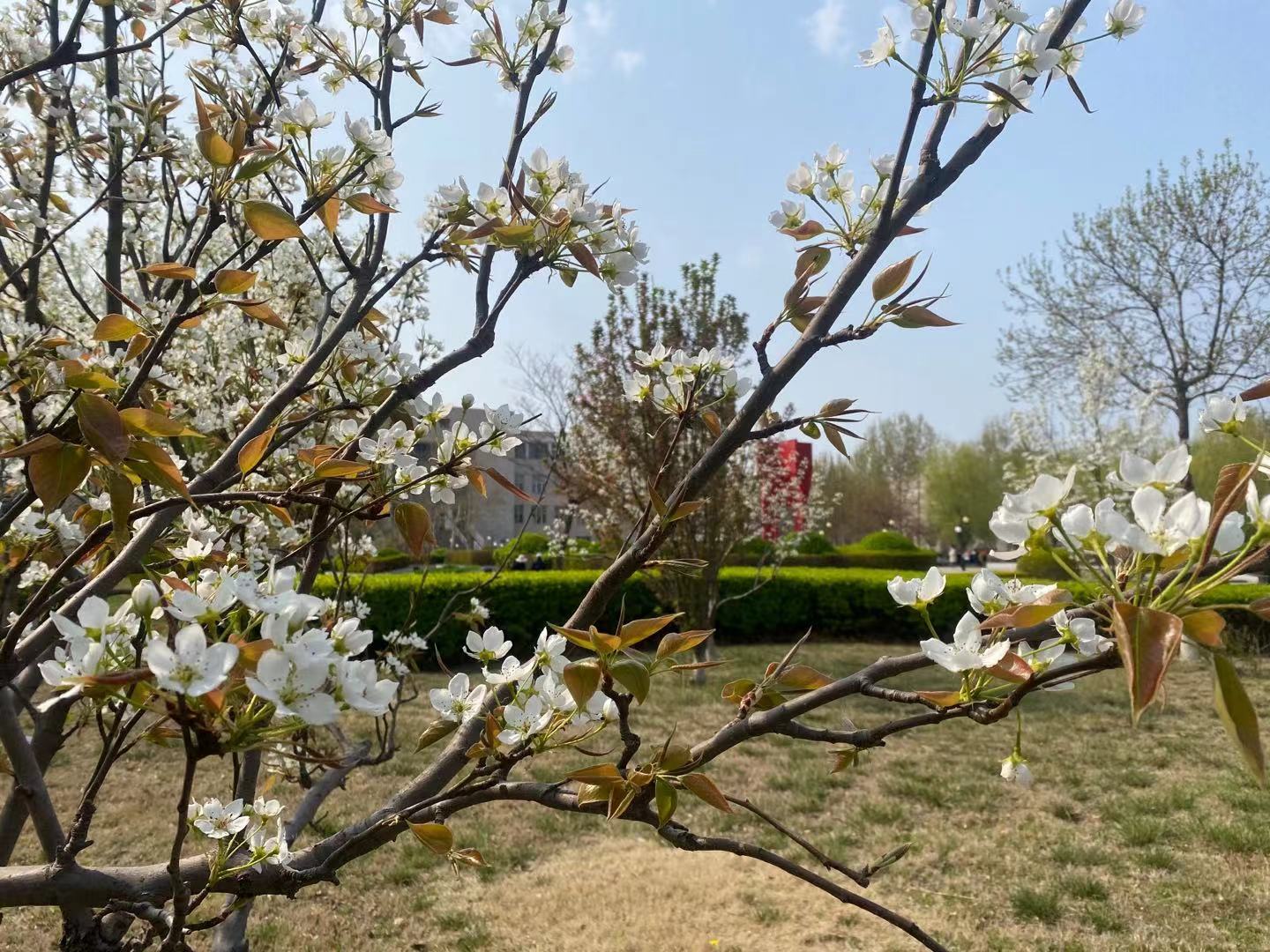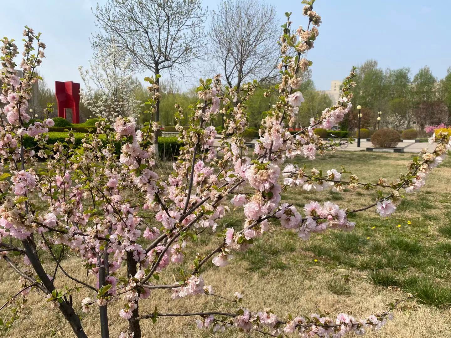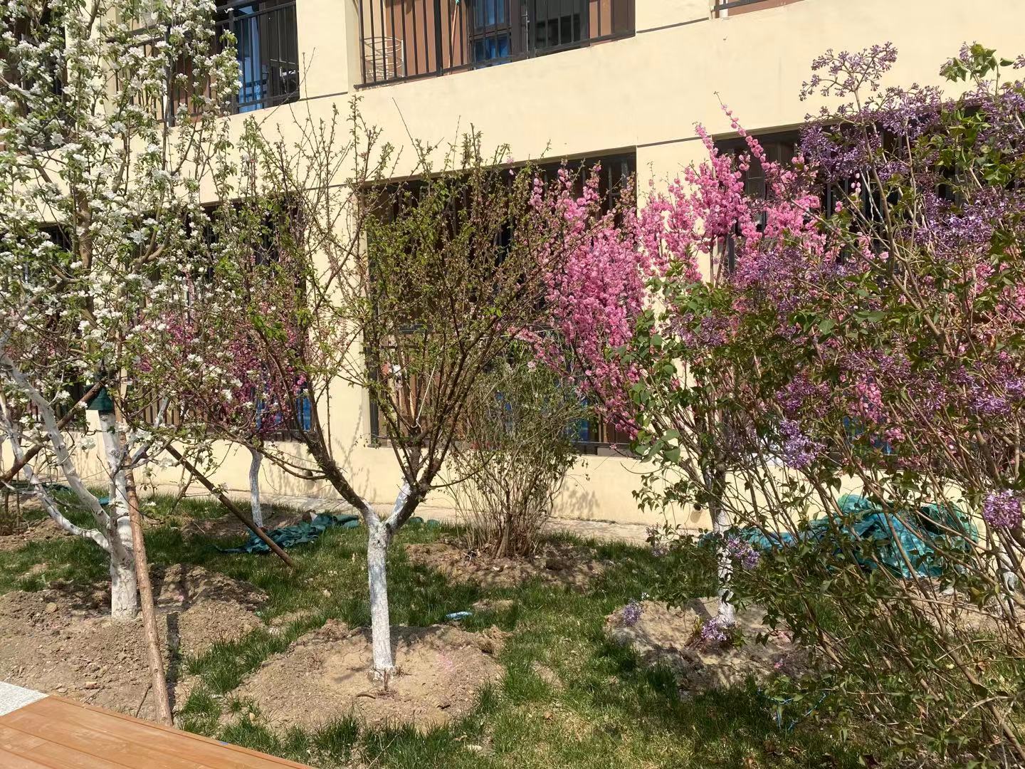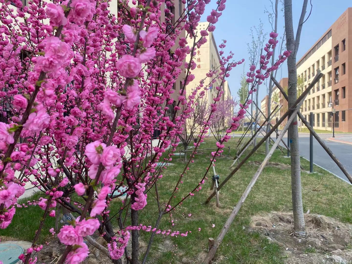 现校园种有法桐、速生杨、毛白杨、金丝柳、馒头柳、垂杨柳、国槐、金叶槐、龙爪槐、合欢、榆叶梅、油松、玉兰、西府海棠、碧桃、枣树、杏树、梨树、桃树等近30余种树木,近2200余株。