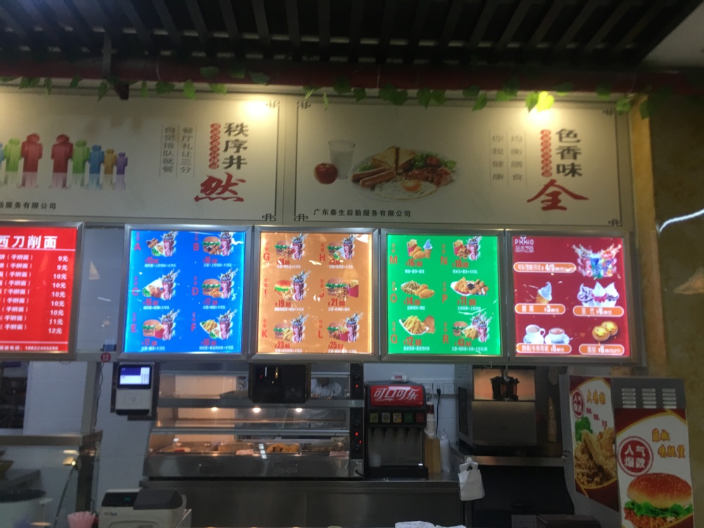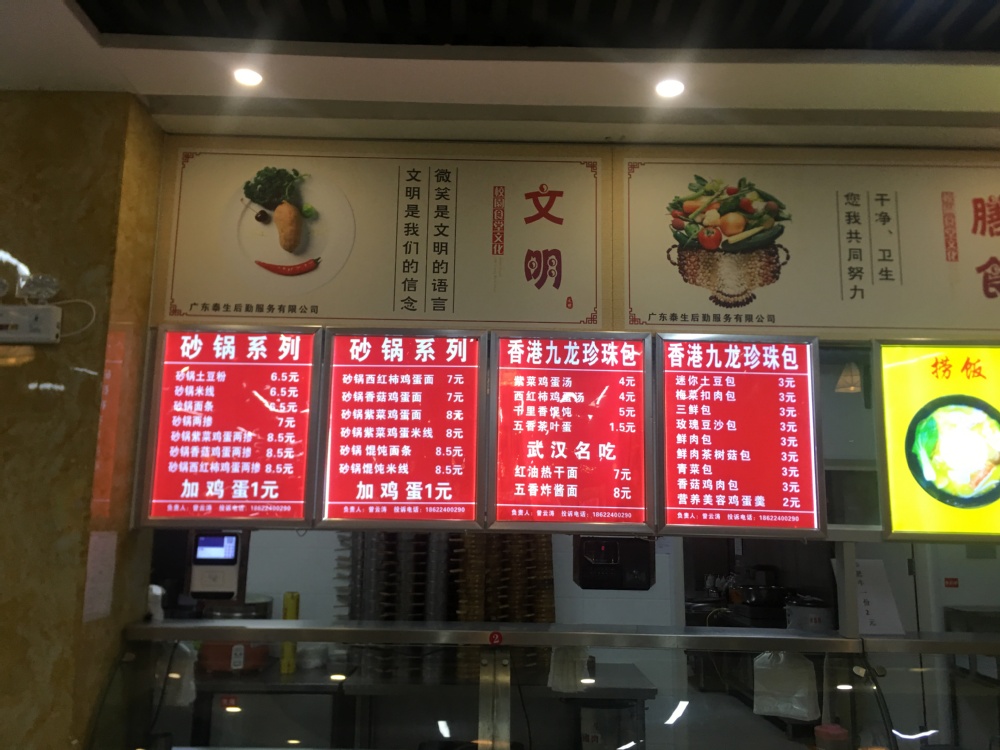 天才苑餐厅成立于2008年8月,是由广州泰生饮食管理服务有限公司投资,属学院外包食堂,设备投资约300万元,具有较为完善的管理体系和专业的管理队伍。食堂建筑面积为3740.18平米,就餐区餐桌280张,可一次性供1500余人就餐,食堂除大锅菜以外另设有风味小吃,窗口共计22个,如:米线、小笼包、瓦香鸡、豆浆、飞月水饺、杂粮煎饼、萌锅焖饭、品禾之风汉堡店、面夫子、F+牛肉饭、小火锅、重庆小面、小碗菜、重庆鸡公煲、麻辣烫、营养粥、掉渣饼、拉面、檬大咖奶茶等,从口味上满足南北地域师生的需求。