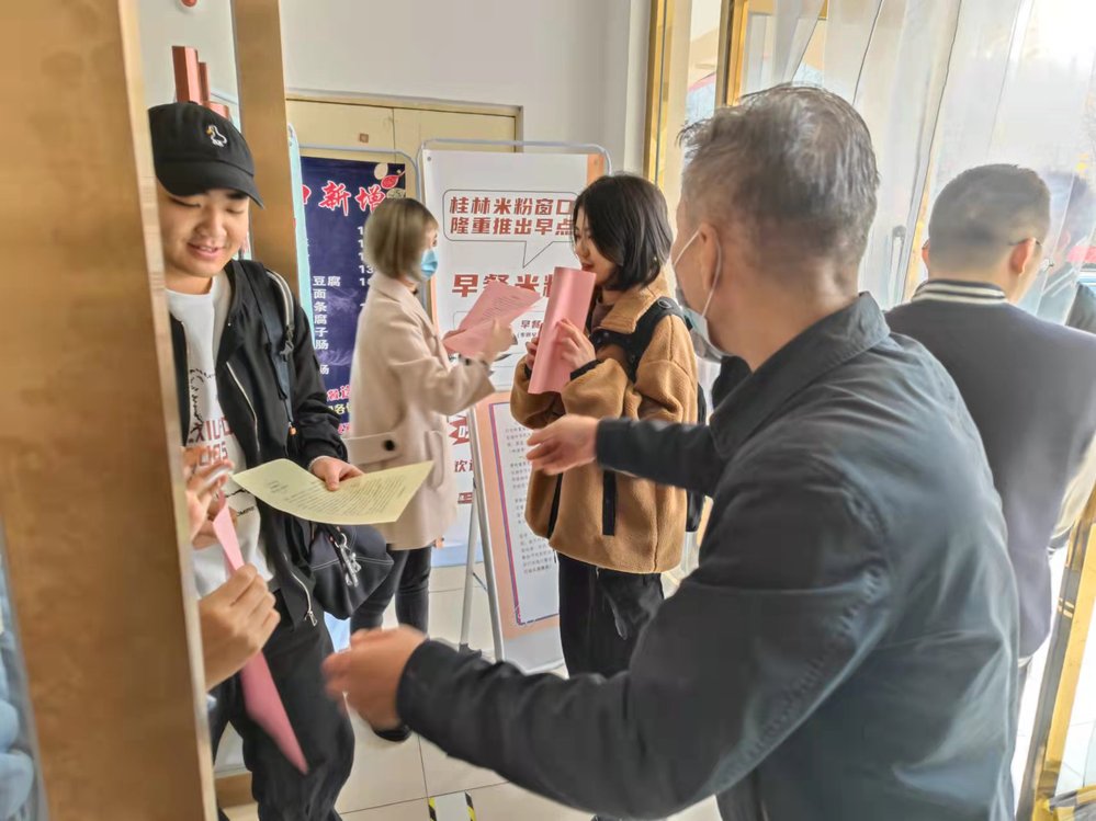 为弘扬中华民族勤俭节约的传统美德,强化节约光荣、浪费可耻的舆论导向,引导学生树立正确的消费观念,11月17日中午,学院后勤基建部组织各餐厅开展了“厉行节约、反对浪费,光盘行动从我做起”的宣传主体活动,学生志愿者以发放《节约粮食倡议书》的形式,在就餐高峰期,向同学们积极倡导简约适度、绿色低碳的生活方式。