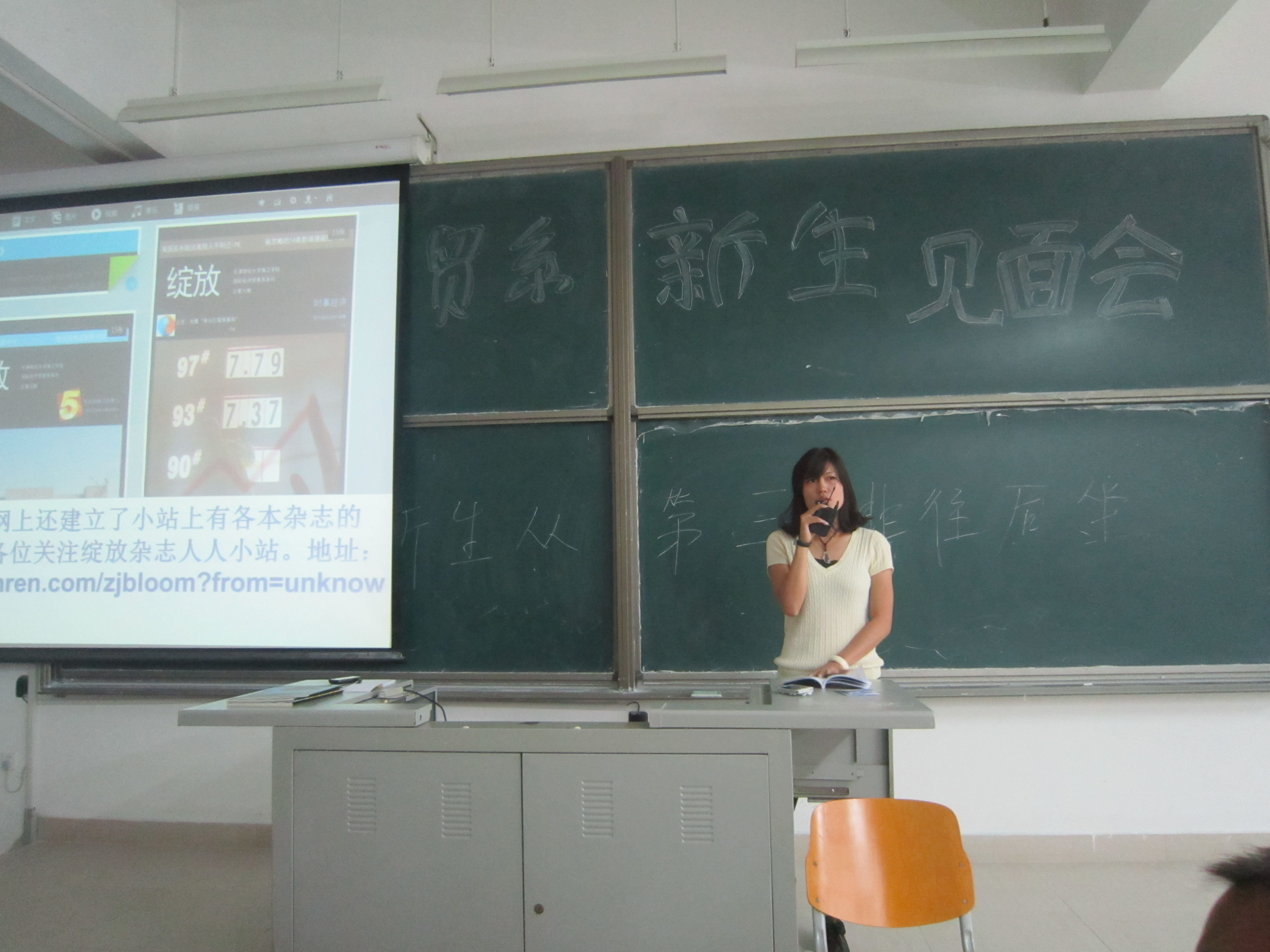 2012年9月7号上午9:30在日益216举行了国贸系2012级新生见面会,国贸系辅导员毕玉老师和学生会主席团及各部成员均出席了此次见面会。本次见面会的主持人由国贸系学生会主席陈瑀琦同学担任,他向大一的新生们介绍了国贸系系主任刘恩专老师和国贸系辅导员毕玉老师,以及国贸系成立以来的发展历程和在学院的发展状况作以简单的介绍,随后,国贸系学生会各部成员又分别为新生详细的介绍了本部的工作性质和范围。本次见面会让刚刚走进陌生环境的2012级新生对国贸系有了全面的认识和了解,使他们在国贸系的快速成长有了一个明确的指示方向。