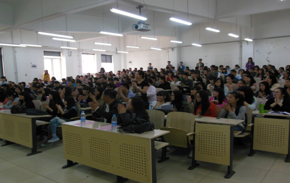 首先进行演讲的是以出色的成绩名列前茅的王瑞梦同学,她曾连续三年获得一等奖学金,单科奖学金以及2012-2013学年国家奖学金,获得“十佳大学生”、“优秀共青团员”、“优秀学生干部”等荣誉称号,2014年考入香港浸会大学。王瑞梦结合自身经历,以树立信念为主题给同学们讲了她的大学生活以及考研的艰辛路程,告诉同学们学习要有自己的目标,不能盲目追风,最后以摆正态度,摆脱束缚结束演讲。其次是国金实验1003班的刘怡心,2014年考入湖南大学。她针对考研中各科逐个为同学们做了分析。随后是陈墨畅,于2014年考入天津财经大学,以财经类金融专业,理工类金融专业为同学们做出具体分析,最后又向同学们推荐了考研书籍。第四位是保险1002班的文艺,2014年考入天津财经大学。文艺学姐以诙谐幽默的语言讲述自己的考验历程,考研心态,并对英语、数学、政治作出了精细的分析,以及考研前的复习时间分配,以生动的语言缩小了与同学们之间的隔阂,给同学们很大的鼓励。最后是国金1023班的吴雨桐,2014年考入天津财经大学,她从不知努力到在隆冬忍病刻苦背书,告诉同学们不能自暴自弃,生活也不能无所事事,给了同学们很大的动力。最后说,“我这个学渣都可以做到,你们为什么不可以呢”,鼓励同学们学习不管好坏,只要肯努力,谁都可以做到。