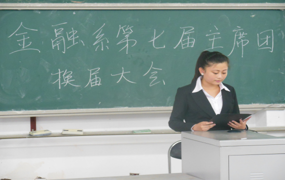 2014年6月9日金融系第七届主席团换届选举大会在老上善阶梯教室召开。出席本次大会的有金融系辅导员刘婷老师,金融系学生会主席石智贤,副主席姚天铎、王雯、汪洋及各部成员。