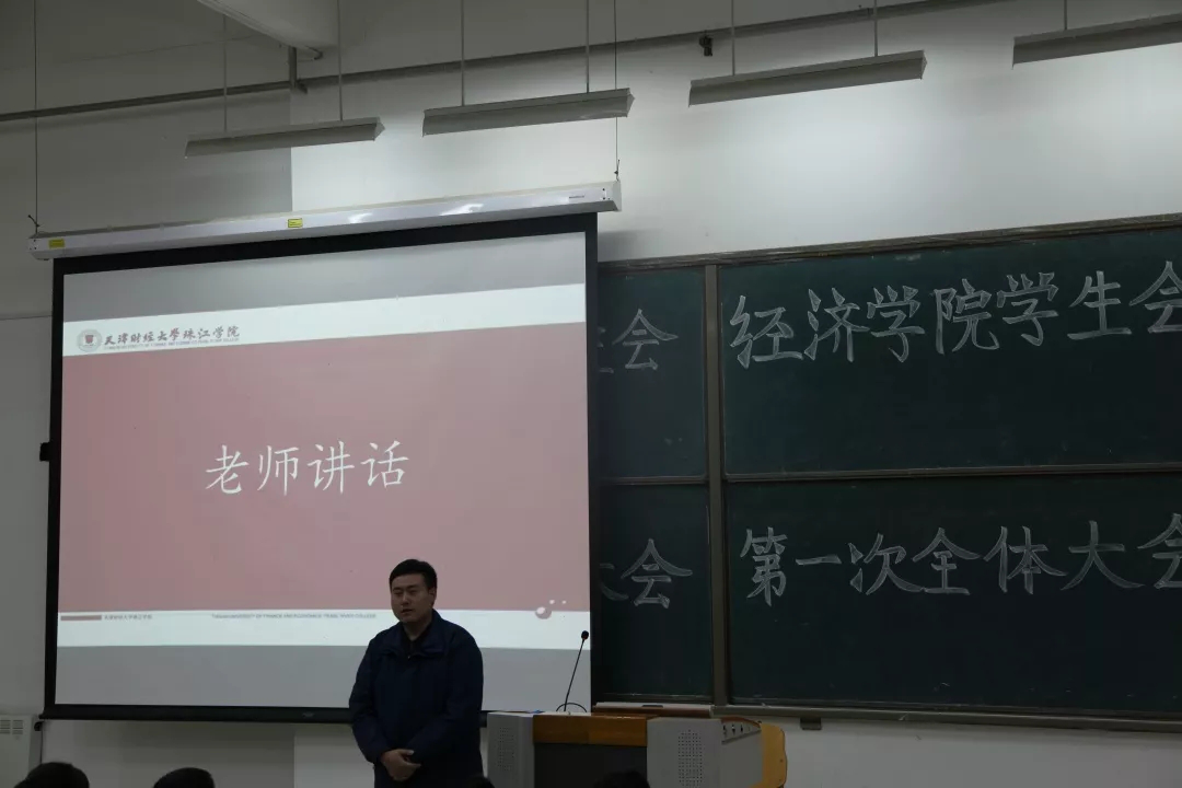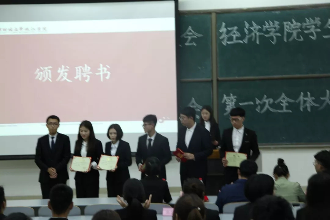张老师表达了对新干事的欢迎,并提出了对同学们的工作期待,也祝愿经济学院学生会越来越好。其后,新任秘书长吴贞尧发表演讲。