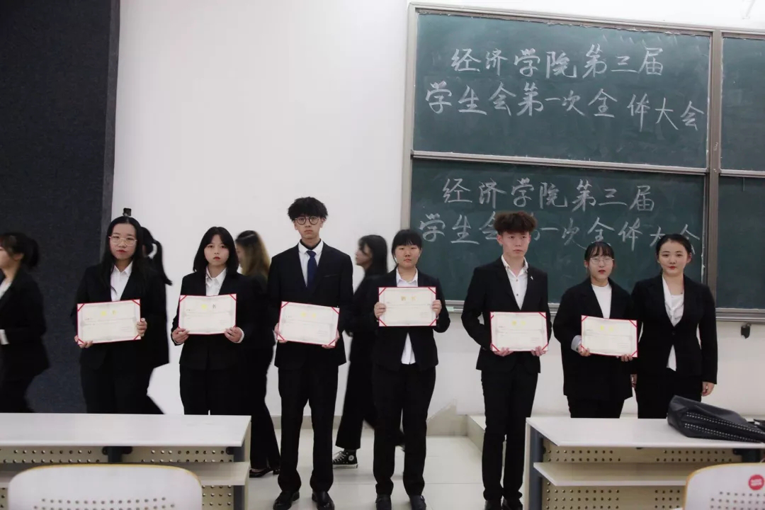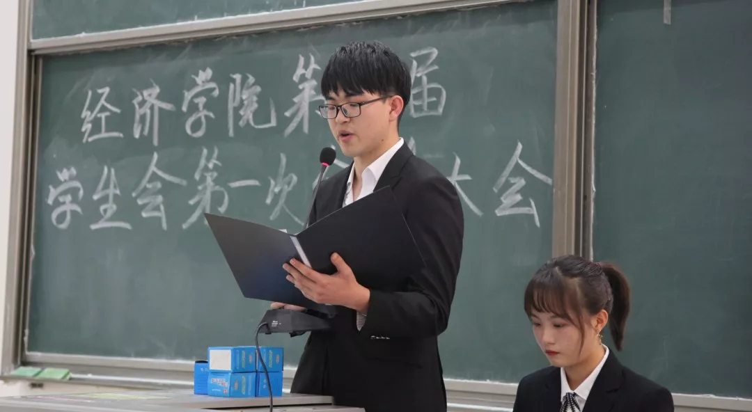 参加本次大会的嘉宾有经济学院学工办辅导员张萌老师,学生会主席团成员卢梓煜、韩学智、张敬易、贾惠淇、陈楚楚以及各部部长。