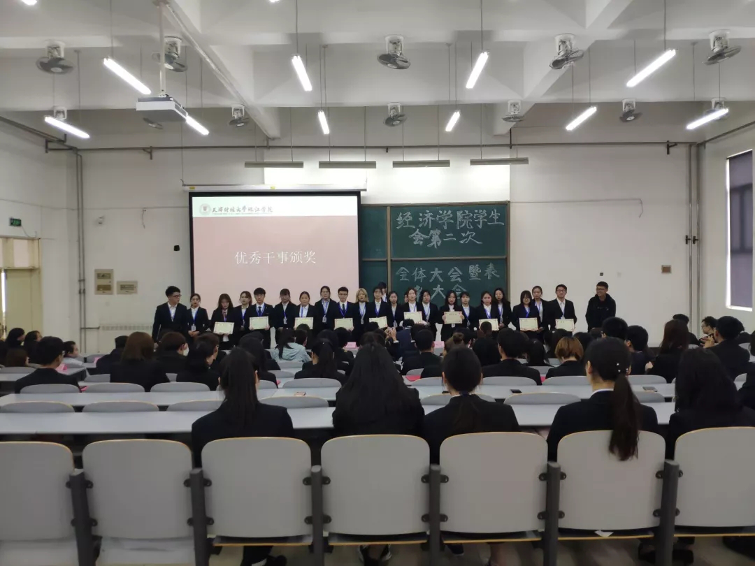 此次会议不仅仅是经济学院第二次全体大会,也是对上一学期表现优秀的优秀干事们和优秀部门的表彰大会。获得“优秀干事”荣誉称号的同学分别是:秘书部的李生远、刘昕缘、马晓宇;外联部的王尧、方海正、罗晓彤;生活部的刘宇、王丹妮、王雨竹;学习部的黄兴旭、顾川、李云豪;体育部的刘莹、李鹏涛、丁蕊;文艺部的王渊、程诗玥、王婧;新媒体部的徐艺珊、马宏宇、刘瑞雪、靳文杰。获得“优秀部门”荣誉称号的部门是秘书部、生活部和新媒体部。各位老师和主席团为这些同学和部长进行了颁奖。