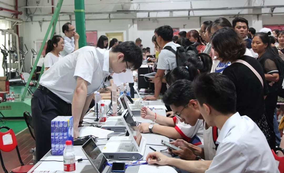 2019级新生陆续到来,在学生志愿者的引导下,有条不紊的办理入学手续。热心的志愿者们佩戴工作牌,个个精神饱满、干劲十足,帮助新生和家长指引报道相关流程。还有由学长学姐组成的班助团为新生办理入学手续:收取相关入学材料、办理宿舍入住手续等。迎新现场还设立了现场咨询点、综合服务点、医疗服务点等,为新生和家长提供全方位的服务。