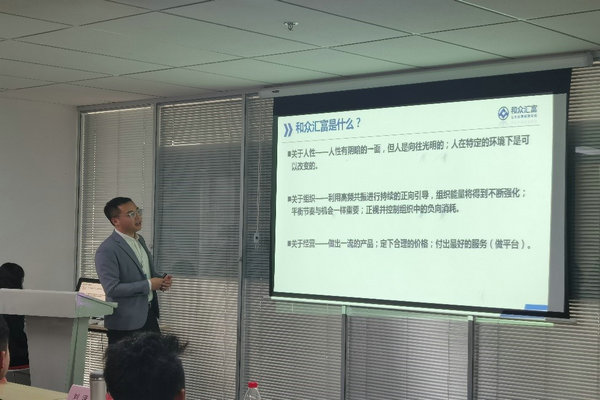 最后,刘泽东院长代表师生对公司的周到安排表示了感谢,并总结了两点参观感受:其一,在互联网和金融科技快速发展的新时代,同学们需要更丰富的知识储备和多方面才能以应对新时代考验;其二,新兴金融企业与传统金融企业有着根本差异,依托互联网理解用户需求、依据真实需求设计金融产品、再向市场推广的市场导向型金融科技模式将呈现出强大的生命力。他强调,学院与公司合作的职前教育培训班是双方合作的良好开端,今后我院将继续与和众汇富科技股份有限公司进行深入的合作交流。