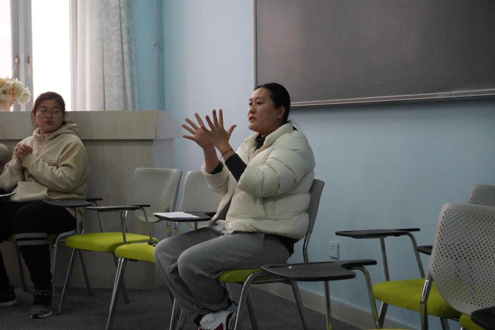 在“小鸡成长”游戏中,同学们通过体验小鸡孵化成长的过程,感受现实与理想、成功与失败,鼓励同学们面对困难只有不断坚持,寻找机会,才能成功突破自己。在“走出舒适圈”游戏中,董老师用正反手十指交叉的案例,启示同学们感受舒适圈的产生与摆脱过程。随后,每位同学都分享了自己的舒适圈,并思考了舒适圈带给自己的成长限制。董老师为大家提供了不同的建议,引导同学们要充分内视自己,把握自己的舒适圈并告诉自己:我可以突破它。在“水晶球之旅”游戏中,同学们闭眼冥想自己在25岁、30岁不同的生活状态,探究自己的理想自我是分为哪几个方面的,从而对自己的未来有更深入的理解。在“我的角落”游戏中,董老师指挥同学们手拉手围成圈,互相限制的围绕教室走,并要求大家在过程中努力地靠近自己认定的某个安全角落。这其实就象征着同学们历经艰难去追逐理想中的未来,可能成功了,也可能没有达到,但最重要的是你能明晰遇到的阻力,挖掘自身并帮助自己达到平衡状态。