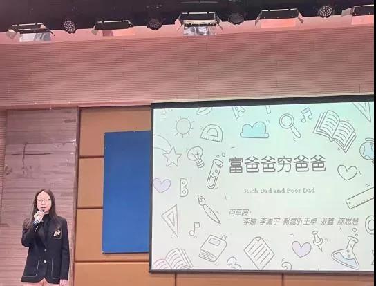 经济学院另一支队伍——百草园小组,为我们介绍的书籍是《富爸爸与穷爸爸》,由美国作家罗伯特·清崎与莱希特所著。本书以主人公清崎的视角主要讲述了“穷爸爸”和“富爸爸”截然不同的金钱观和财富观,穷人为钱工作,富人让钱为自己工作,深刻的揭示了经济学规律的重要性。这本书告诉我们在现实世界中,人们往往是依靠勇气而不是聪明去领先他人的,选择不同,命运不同。